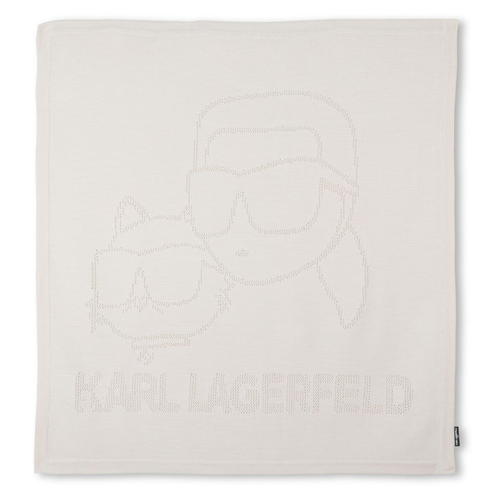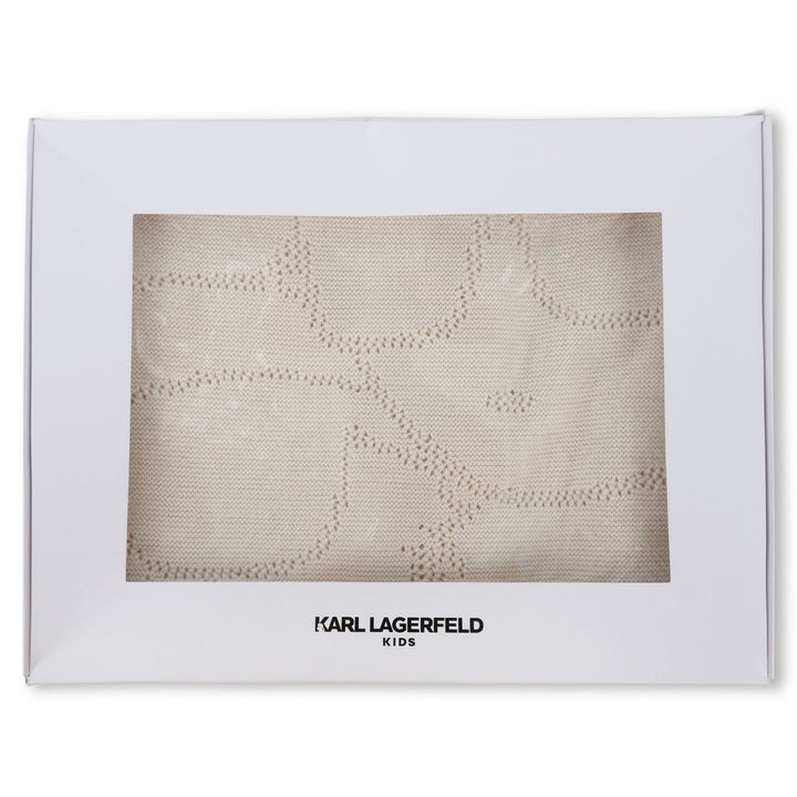 Soft beige logo-print blanket for baby boys and girls by Karl Lagerfeld, crafted from premium cotton for cozy comfort and style.