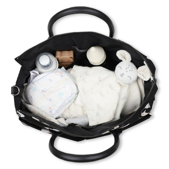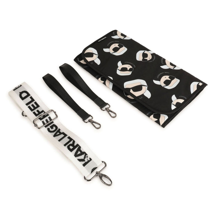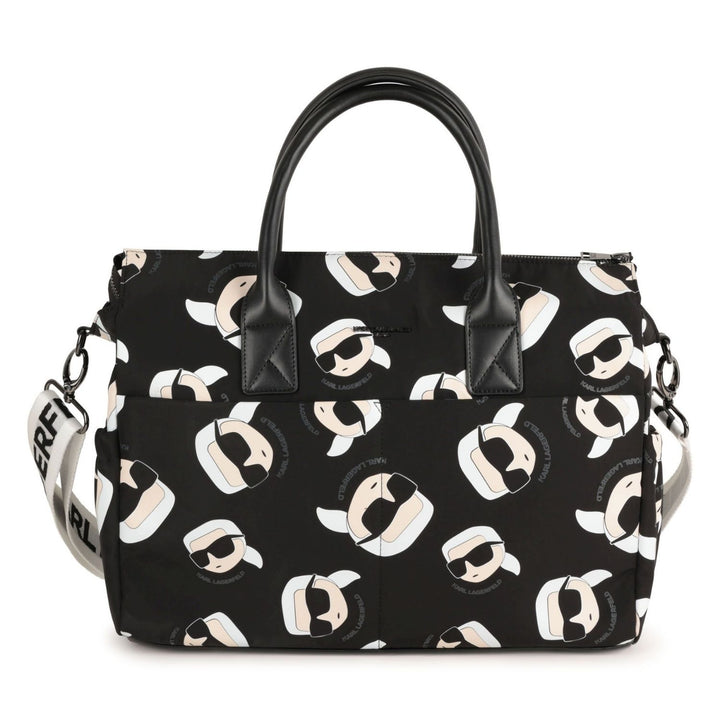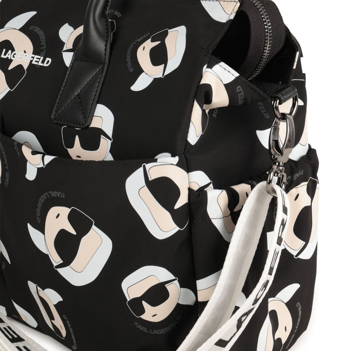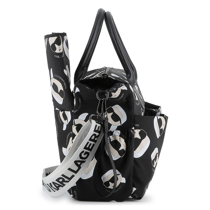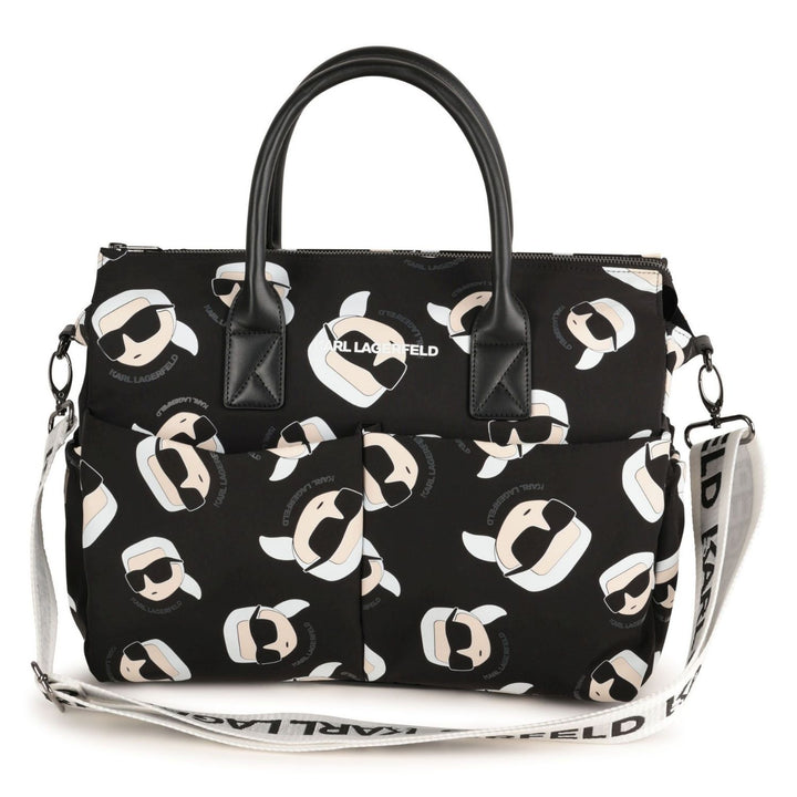 Baby unisex diaper bag featuring a sleek Karl logo print, designed with spacious compartments for everyday convenience and style.