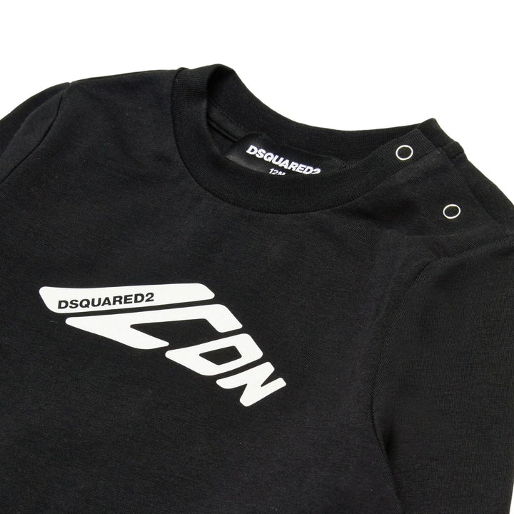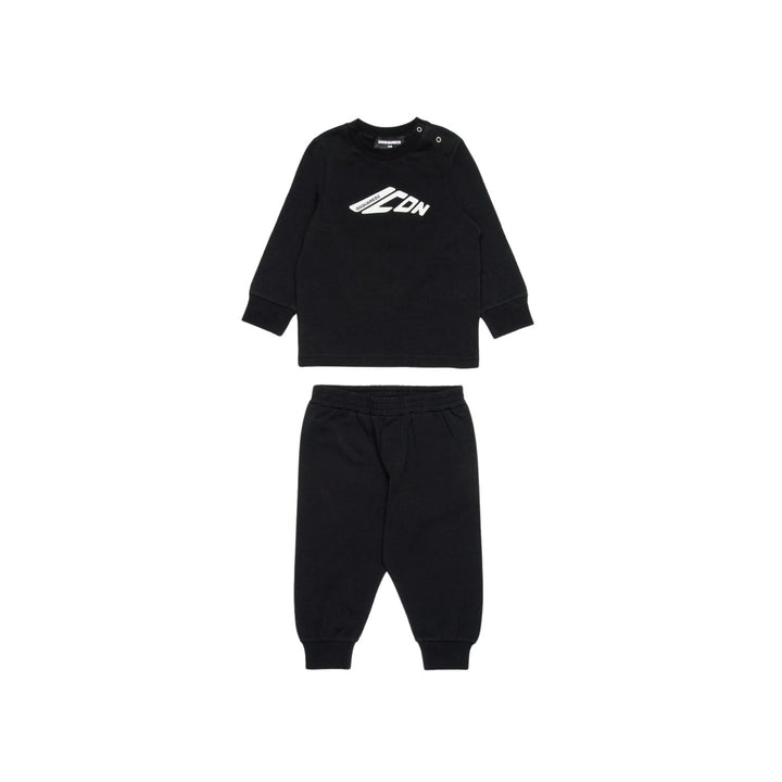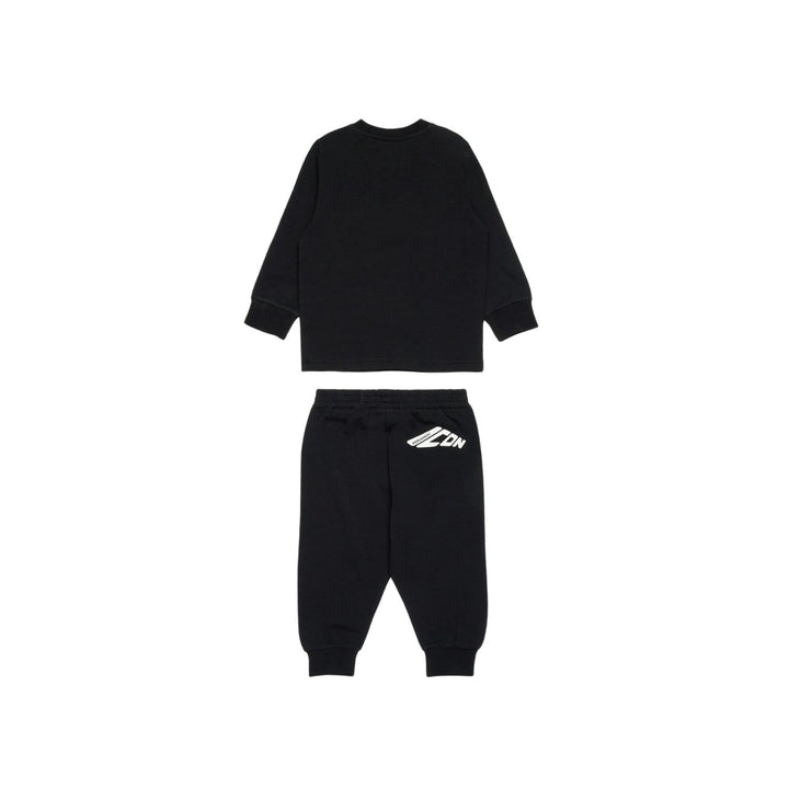 Stretch jersey cotton tracksuit. Personalised with contrasting ICON new generation logo. Long-sleeved crew-neck sweater with practical button fastening at the shoulder. Trousers with elasticated waist and ankles. Comes with branded bag. Perfect for e