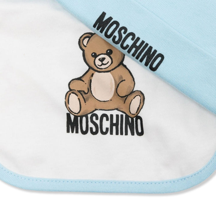 Baby Unisex Blue & White Logo-Print Bib Set with Moschinos signature logo detail, crafted from soft fabric for comfort and easy everyday use.