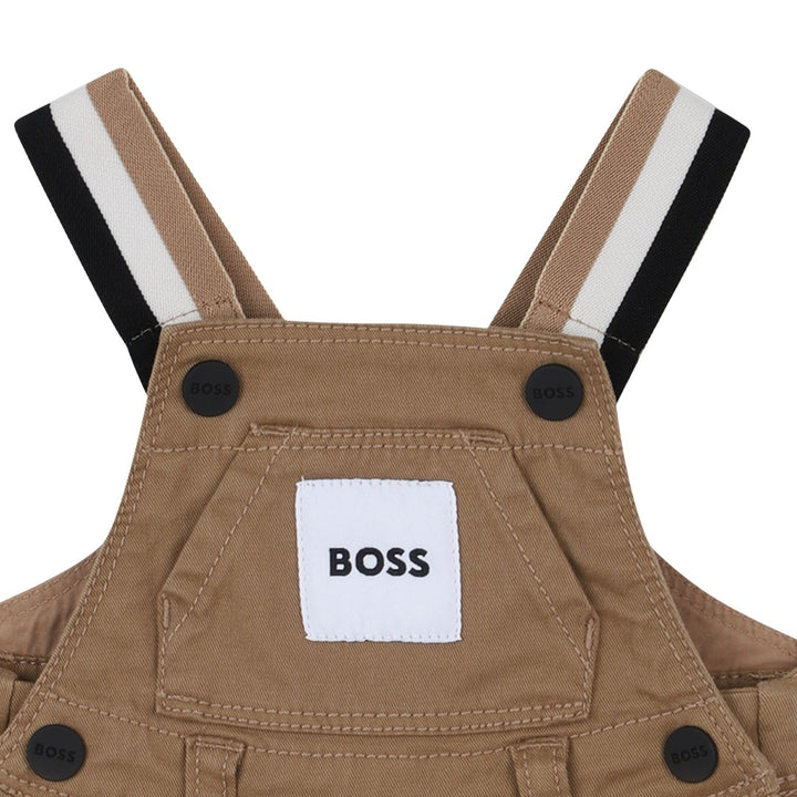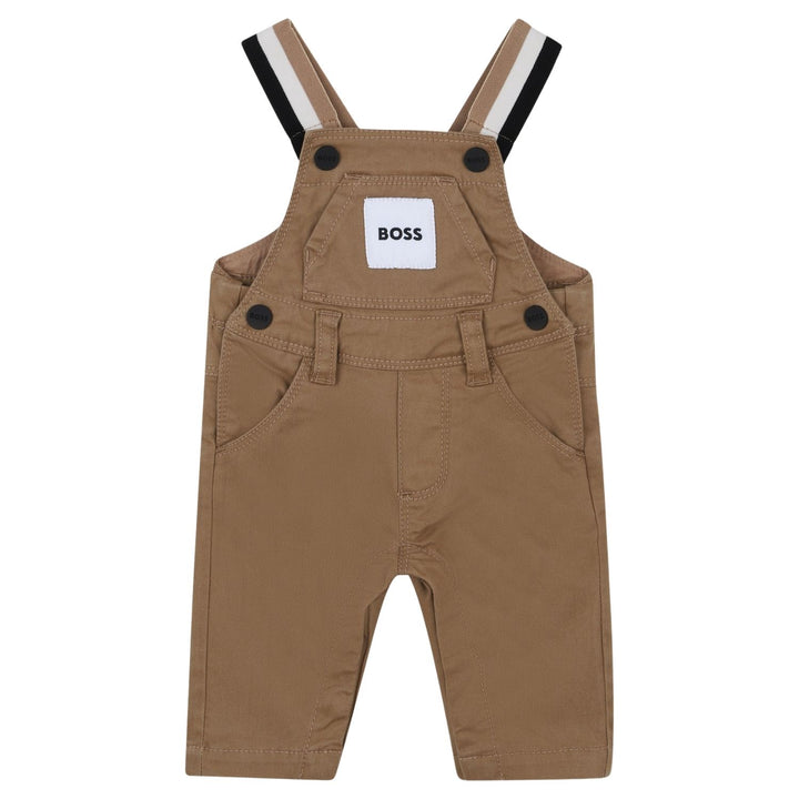 These brown overalls from BOSS are crafted from soft cotton and feature a classic dungaree style. Adjustable shoulder straps with stripe detailing offer a secure fit, while the front bib pocket displays the signature BOSS logo patch for a stylish fin