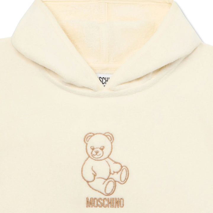 Baby Unisex Cream Embroidered Logo-Print Bathrobe crafted from soft, cozy fabric with Moschinos signature logo embroidery, perfect for comfort and style after bath time.