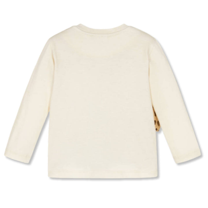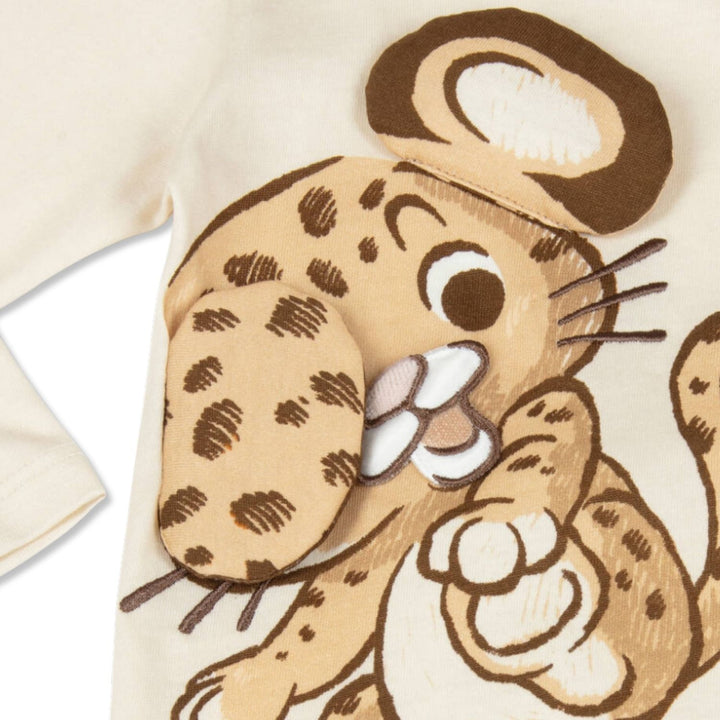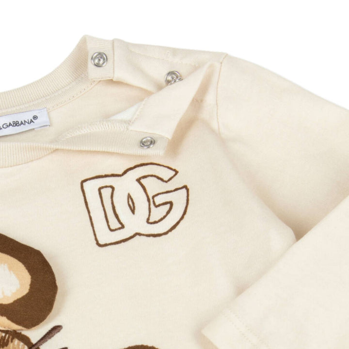 Adorable Cream long-sleeved cotton T-shirt for little boys by luxury Italian brand, Dolce & Gabbana. It has the iconic DG logo on the chest and a delightful baby leopard graphic with super cute 3D ears and embroidered features. Made in soft jersey, i