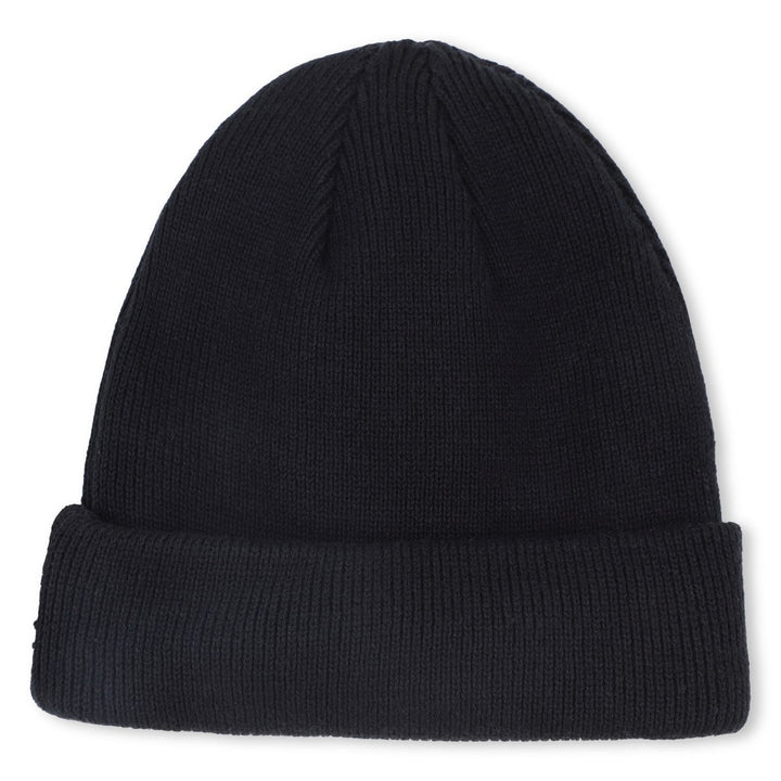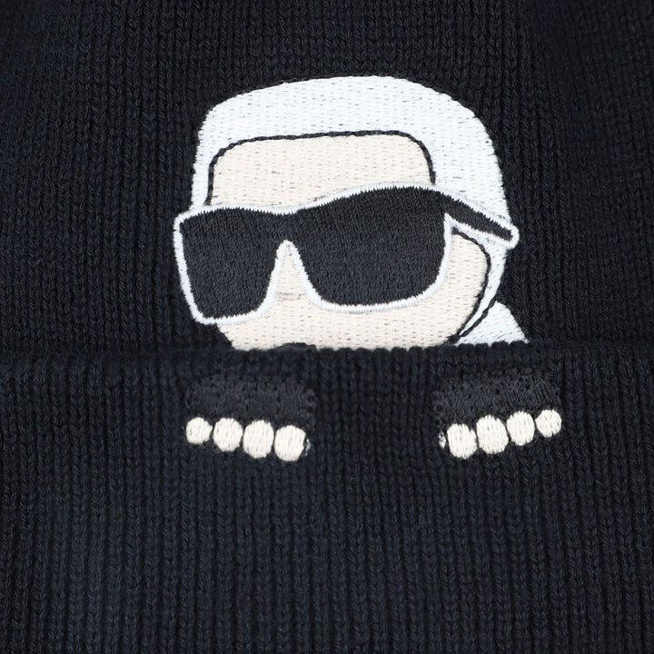 Soft Black beanie for baby boys and girls by Karl Lagerfeld, featuring a cozy knit design and signature logo detail.