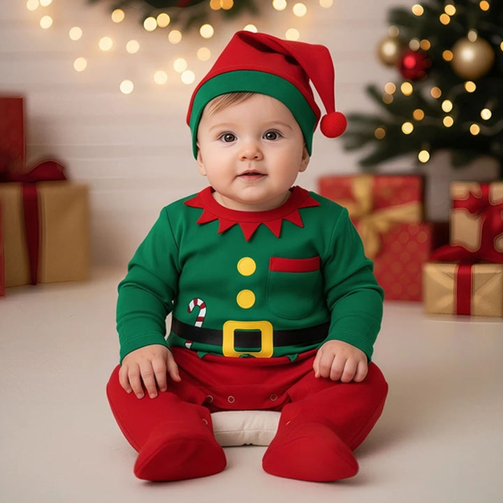 Baby Unisex Green and Red Christmas Rompers with Cap make a perfect festive outfit for your little one. Featuring a cheerful Christmas design in classic holiday colors, this soft and comfortable romper comes with a matching cap for a complete look. Ideal for holiday celebrations, family photos, and cozy winter days.