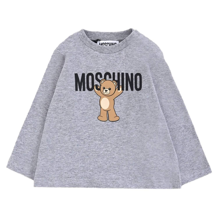 Keep it cute and classic with this white long-sleeve top from Moschino Kids. Made from 1% soft cotton, it features a crew neck and showcases the brands beloved Teddy Bear motif at the front. A cozy and playful staple, perfect for everyday wear.