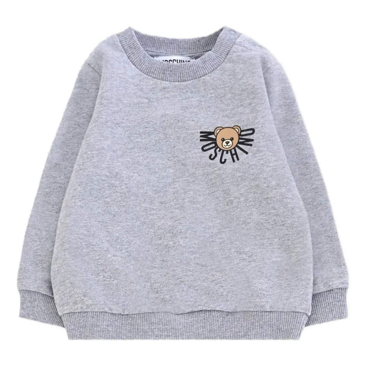 Keep your little one cozy and stylish in this grey tracksuit from Moschino, featuring the iconic Teddy Bear logo. Designed for both boys and girls, it offers soft cotton comfort with a playful designer touch.