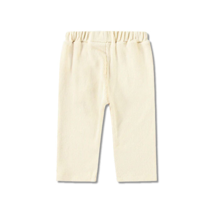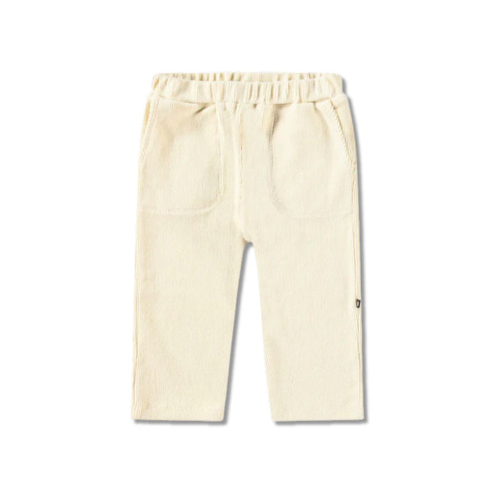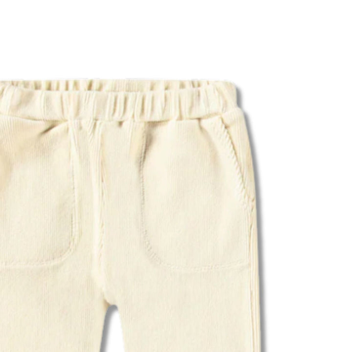 Ivory trousers in corduroy for the little ones. The trousers have a loose fit and front pockets with details. They also have an elastic waist, making them easy to take off and put on.