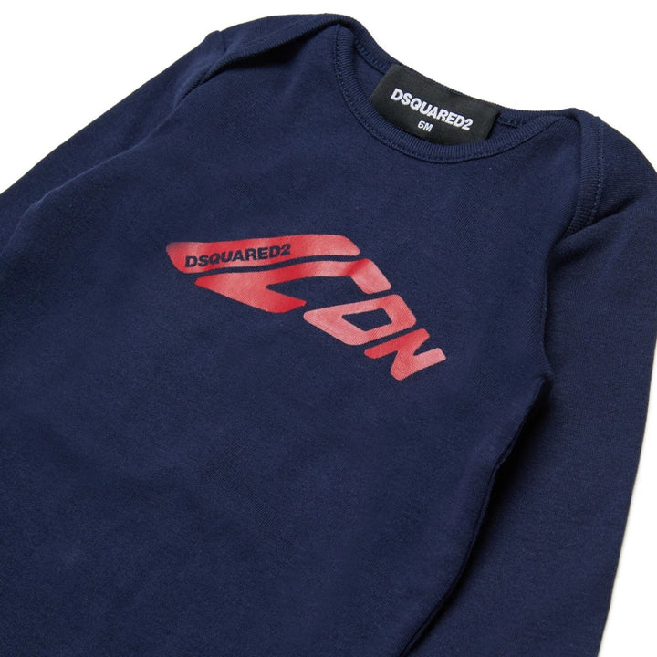 Made from ultra-soft premium cotton, this navy blue romper is adorned with a refined logo print. A perfect balance of comfort and elegance for little ones.