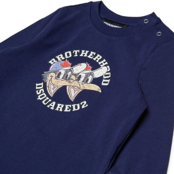 Tailored from soft, premium fabric, this navy blue tracksuit features a bold brotherhood motif with signature logo detailing. Designed to keep little ones cozy while adding a touch of everyday elegance.