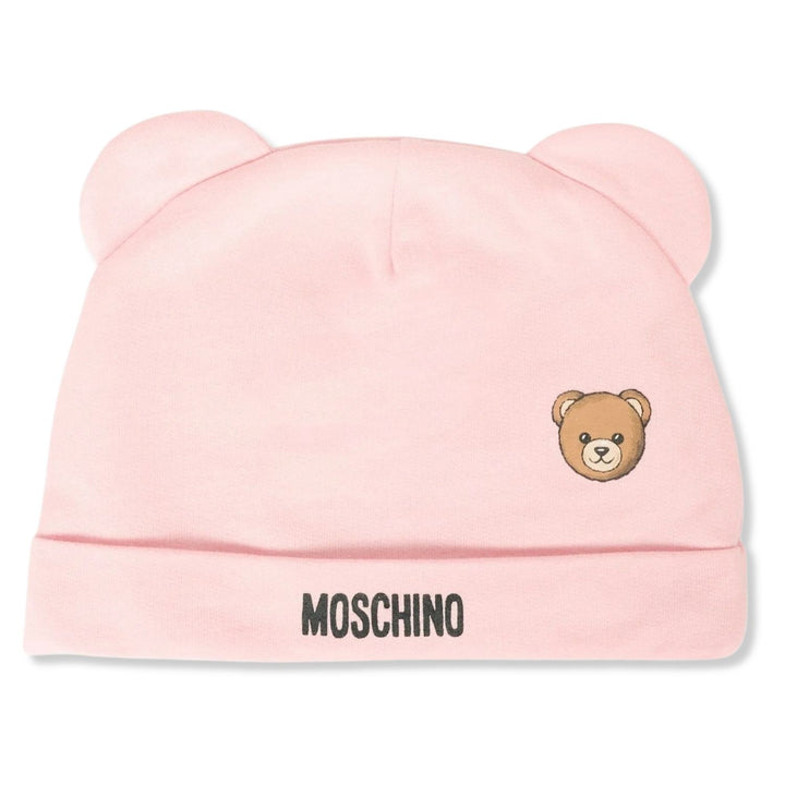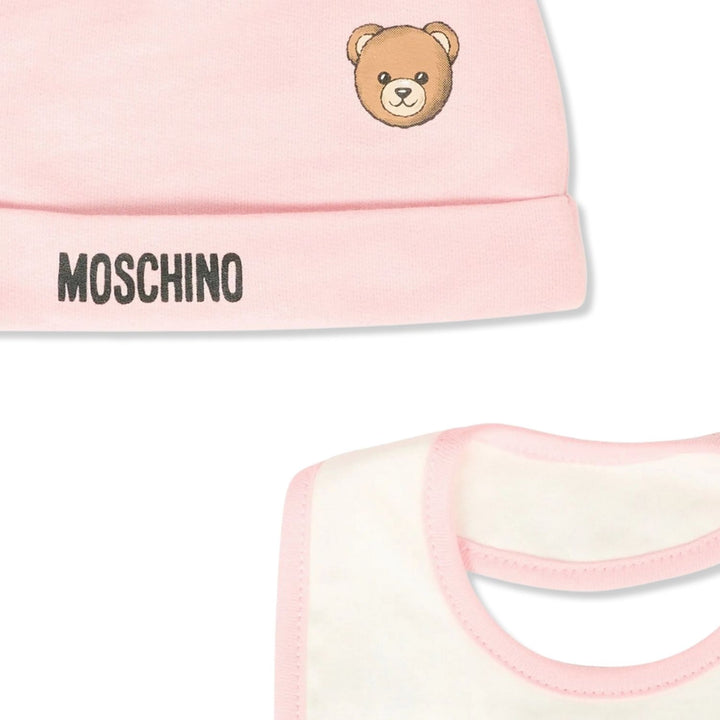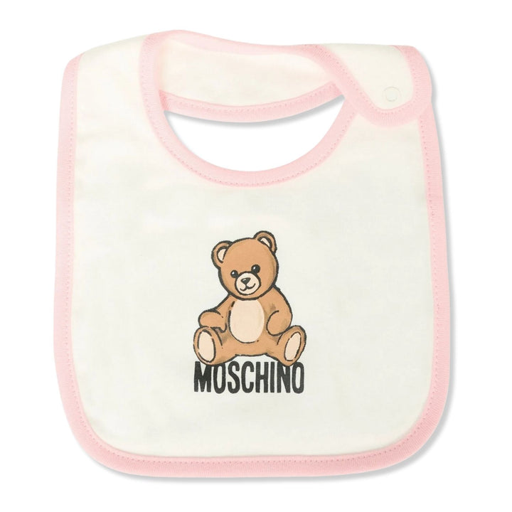 Baby Unisex Pink & White Logo-Print Bib Set with Moschinos signature logo detail, crafted from soft fabric for comfort and easy everyday use.