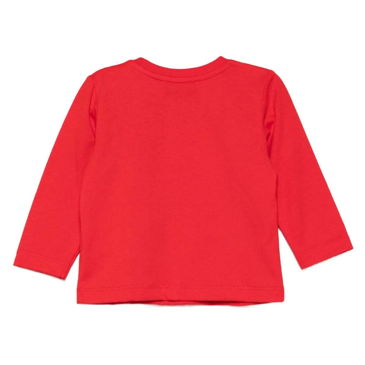 Add a pop of color to her wardrobe with this red T-shirt from Moschino, showcasing the brands beloved Teddy Bear print. Made from soft cotton, it offers playful charm and everyday comfort.