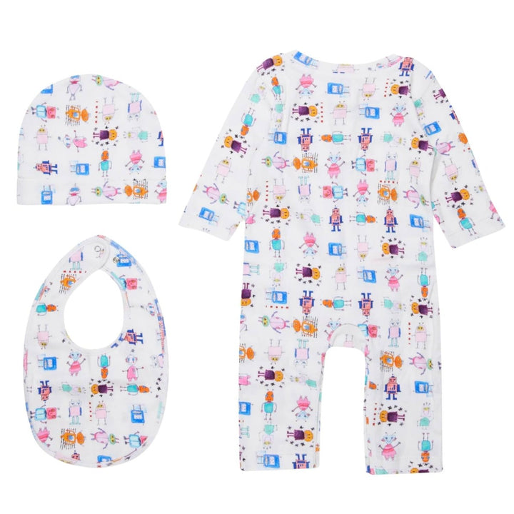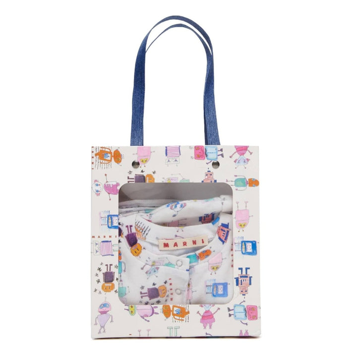 Wrap your little one in style with this three-piece cotton babygrow set from Marni Kids. Featuring an all-over graphic print, the set includes a long-sleeve babygrow with front press-stud fastening for easy changes. Delivered in a charming gift box, its a perfect choice for gifting or everyday comfort.