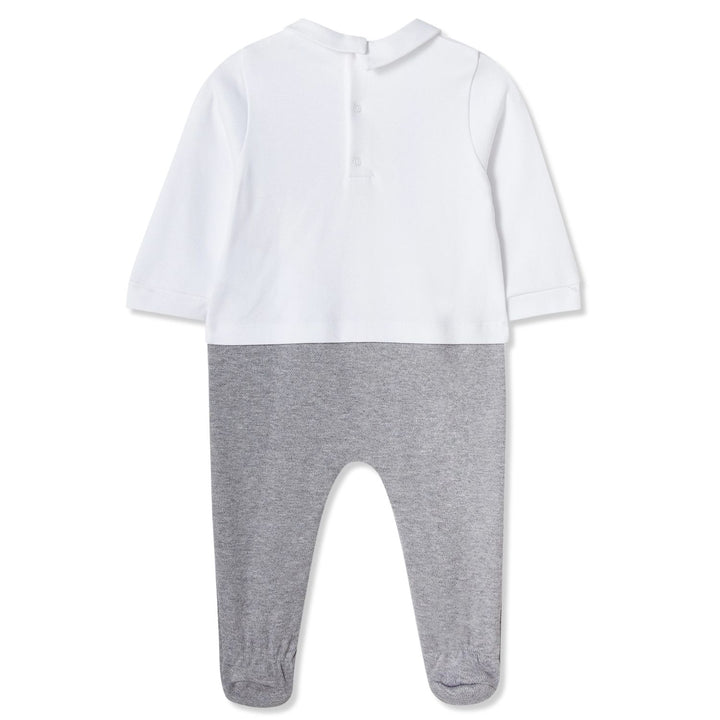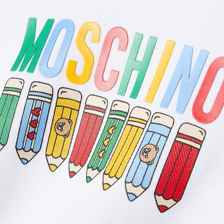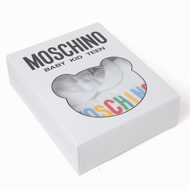 This Moschino baby unisex white & grey logo-patch romper is made from soft cotton, featuring the brand is iconic teddy bear logo for a cozy and stylish look.