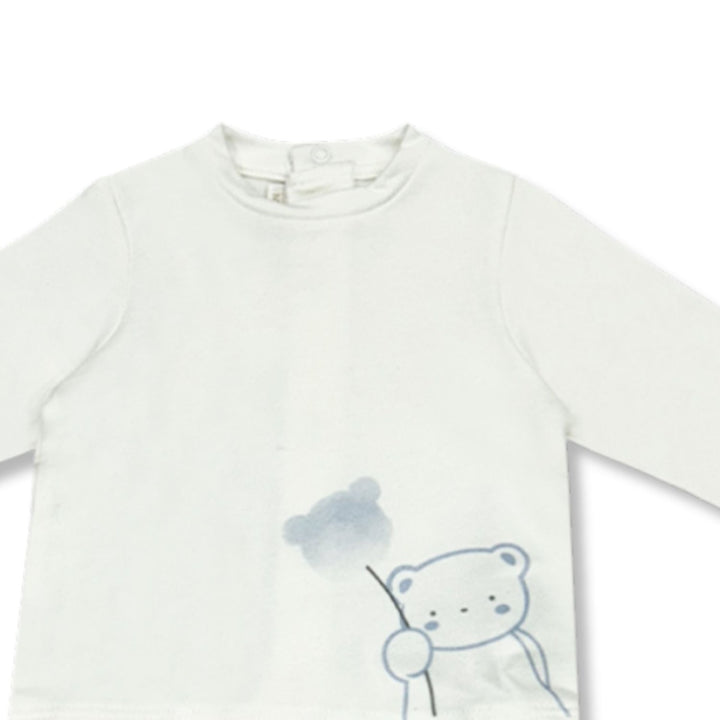 This white co-ord set features an adorable teddy print for a playful touch. Made from soft, breathable fabric, it offers all day comfort and comes with a matching top and bottoms for an easy, coordinated look.