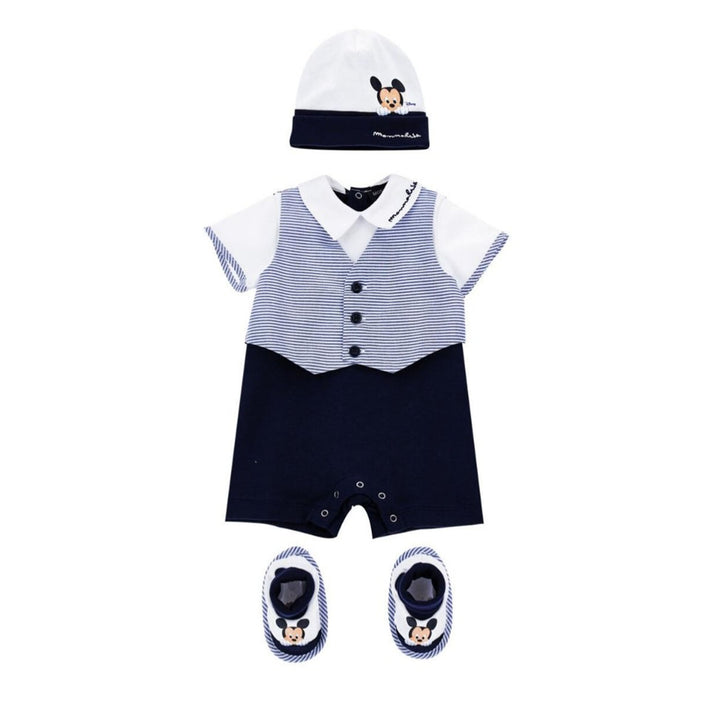 Fun set consisting of a playsuit with waistcoat, hat and slippers.