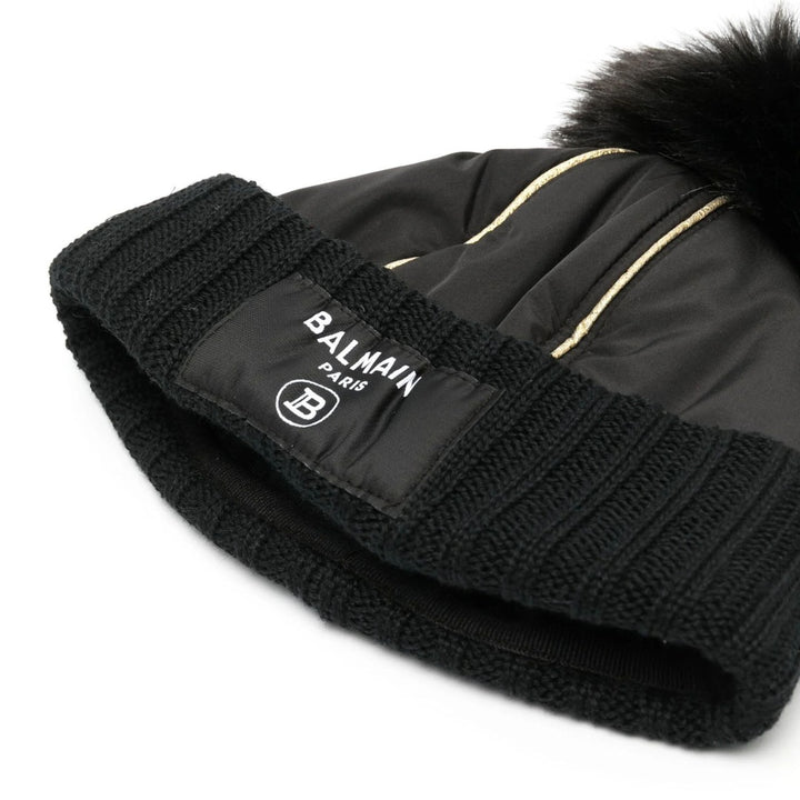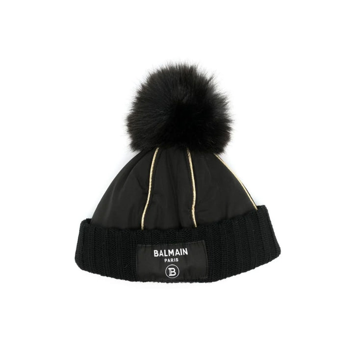 This Balmain Kids logo pom-pom beanie hat is embellished with gold contrast piping for a touch of sparkle.