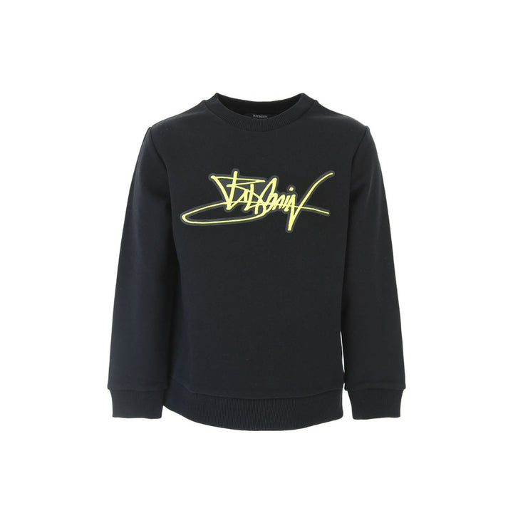 Black round neck Balmain sweatshirt in black full sleeved with a zig zag text in the centre. It will be a great choice for your kids winter vacation holidays and playdates as well.