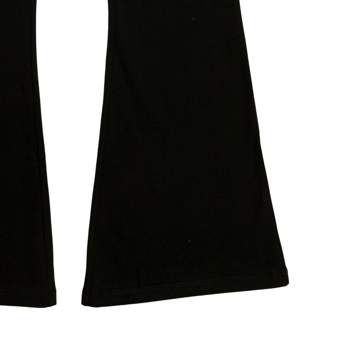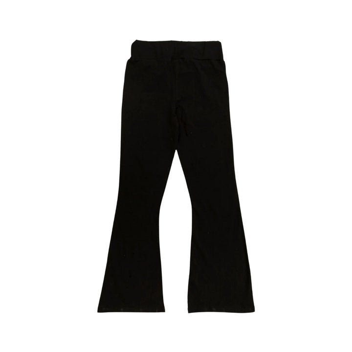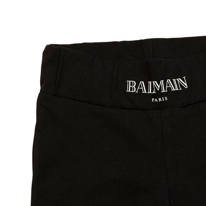 Black flared leggings for girls by luxury French designer, Balmain. Made in soft, easy-to-wear cotton jersey, these cool trousers have a stylish, flared shape and monochrome logo print on the elasticated waist.