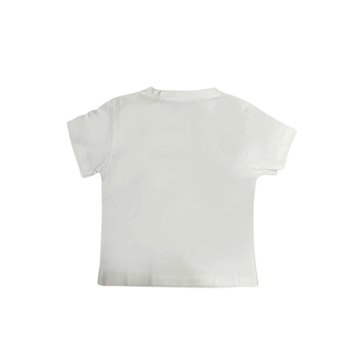 Balmain kids graphic-print short-sleeve T-shirt from Balmain Kids featuring white, cotton, graphic print to the front, button fastening at the shoulder, round neck, short sleeves and straight hem.