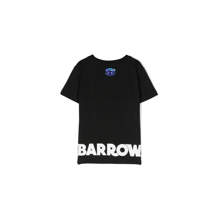 Black cotton logo print tshirt with a front graphic print to the rear crew neck and graphic print at the back with short sleeves straight hem.