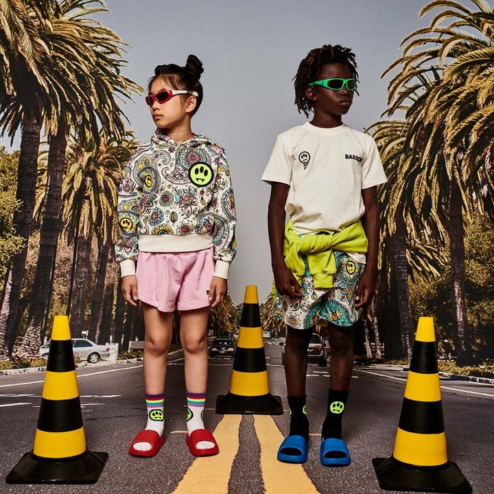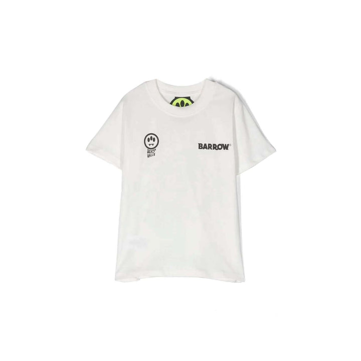 Barrow kids white/multicolour cotton logo print T-shirt with a front logo print to the rear crew neck and attached short sleeves.