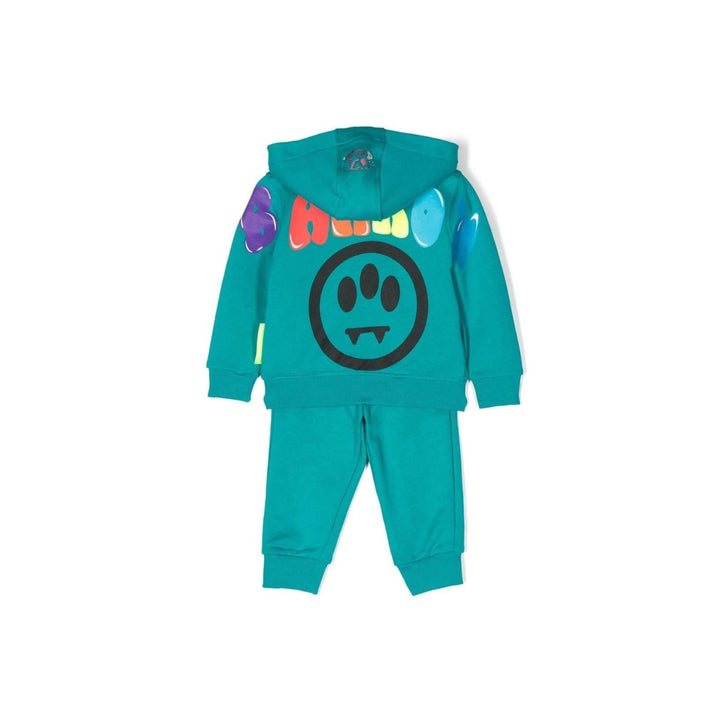 Barrow Kids sea green cotton tracksuit set with logo print at the chest and back attached with full sleeve front zip fastening and a hooded cap. The overall outfit is fun to wear at any ocassion.