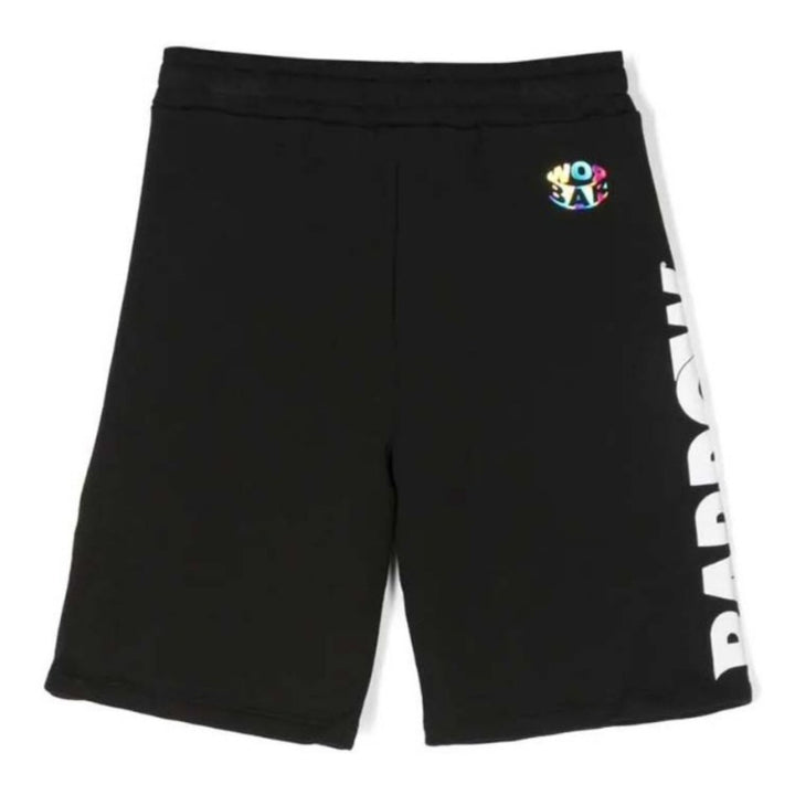Black cotton logo print to the front logo print to the side elasticated waistband front zip fastening pockets straight hem
