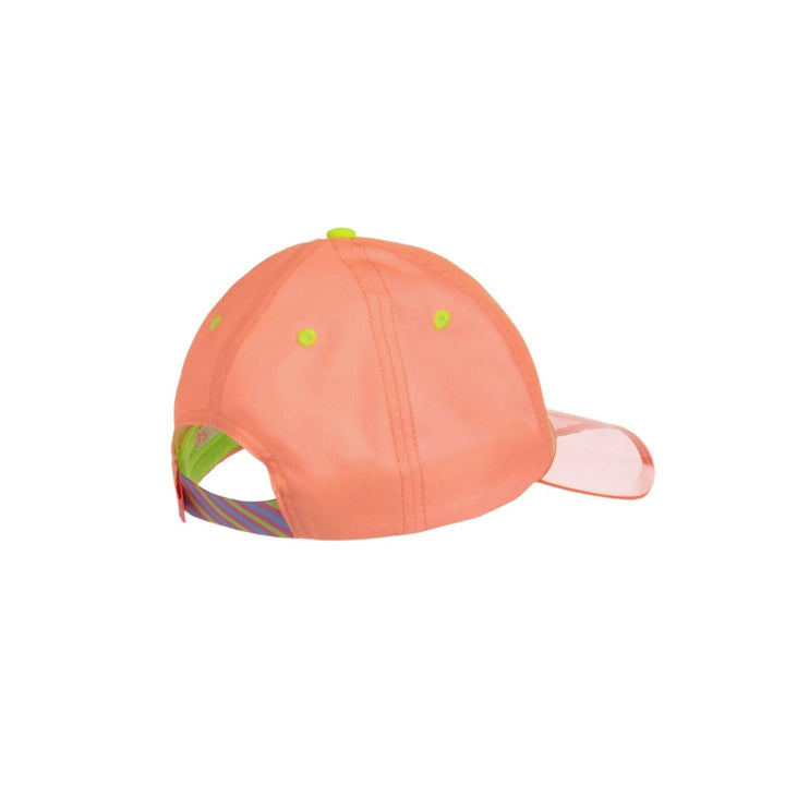Coral pink cap for girls by Billieblush, made in soft cotton twill with a stiff, transparent peak. Part of the Tweety capsule, this versatile accessory has a multicoloured logo print on the front, alongside Looney Tunes iconic cartoon character. It has a striped panel on the back which is gently elasticated for a comfortable fit.