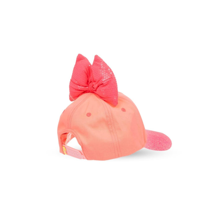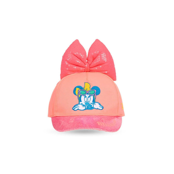 Fun and cute cap for girls by Billieblush, made in soft and smooth twill in the brand's signature neon pink. It has the famous Minnie Mouse embroidered in pastel shades on the front with a yellow Disney insignia on the side to mark the collaboration. Bright and eye-catching, it has a sequinned puffed bow on the top and a logo-branded visor with glittery faux leather trim. There is an adjustable strap on the back for a good fit.