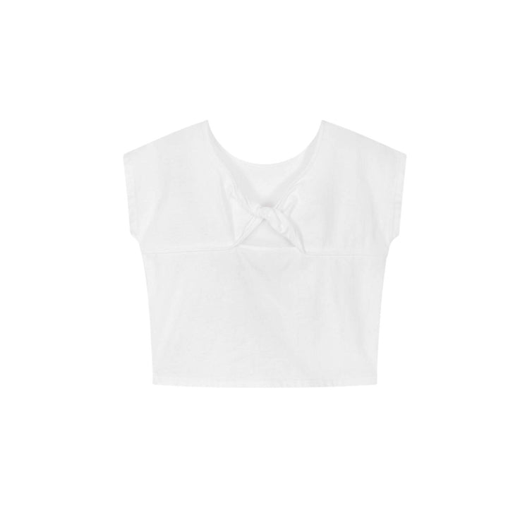 White cotton T-shirt for girls by Billieblush. It has pink and blue tulle butterfly appliques on one side, shimmering with sequins. Made in comfortable jersey, it has twisted detailing around the back.