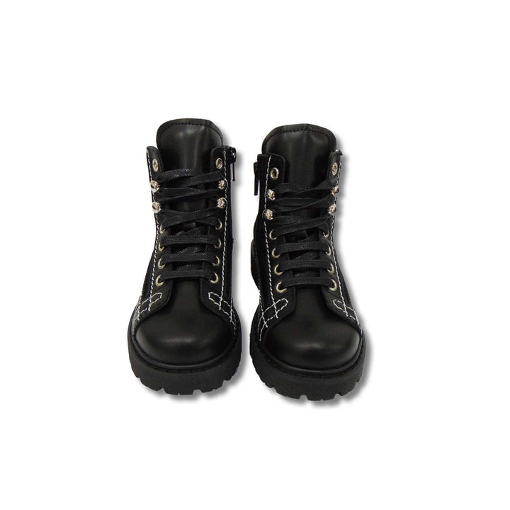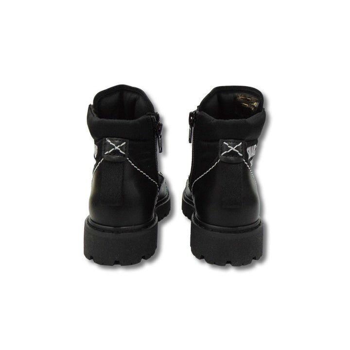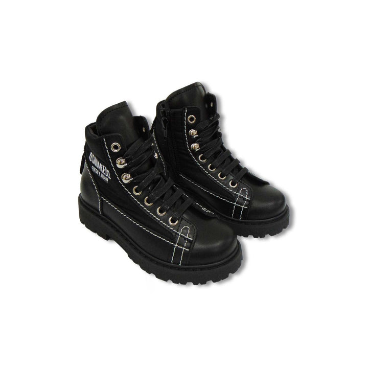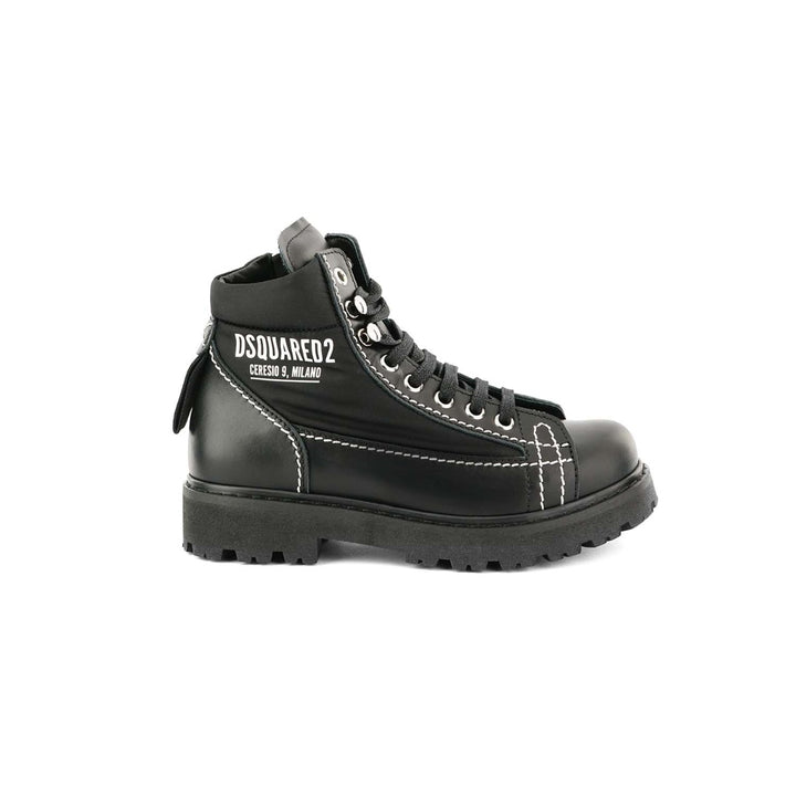 This High-on-Fashion Black Ankle Length Boots for Kids by Dsquared2 is a not-to-miss footwear option. Its super stylish looks are sure to make your kid fall in love with it. The back leather texture with white thread stitching details and the brand l