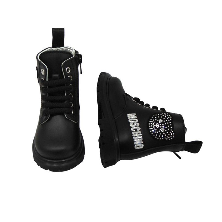 Black Ankle Length Moschino Boots With Glittering Teddy Bear Logo