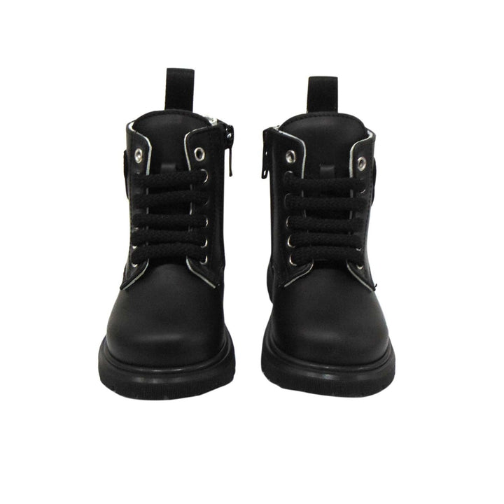 This pair of Black Ankle Length Boots is all that you need to win your little one’s heart instantly. No wonder, your kid will fall in love with this pair of black boots by Moschino which is designed with a white printed brand logo under a stone stu