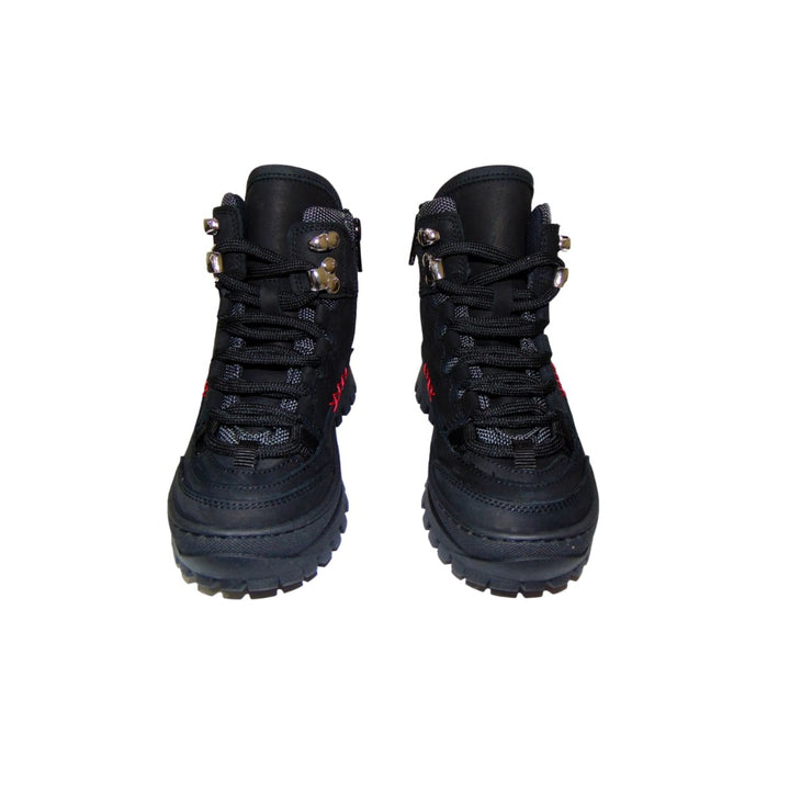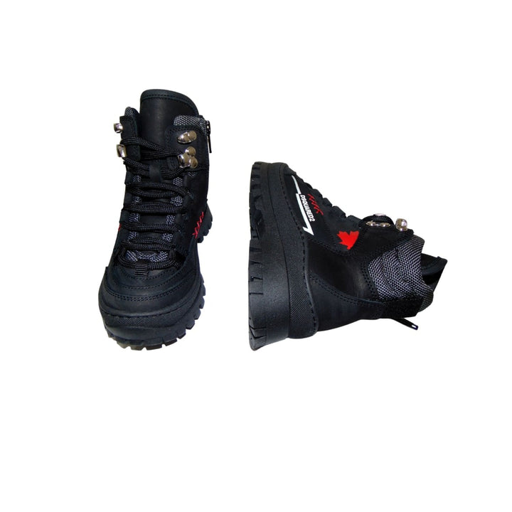 Black canva shoes by DDQUARED2 in black and a fall leave motif on the top. It has a white rubber role for non slipping.