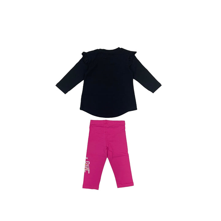 Black and pink jersey set by Pinko with a nice effect of prints of the top. The cool white color will create a nice color cool effect and a black pant set with it.
