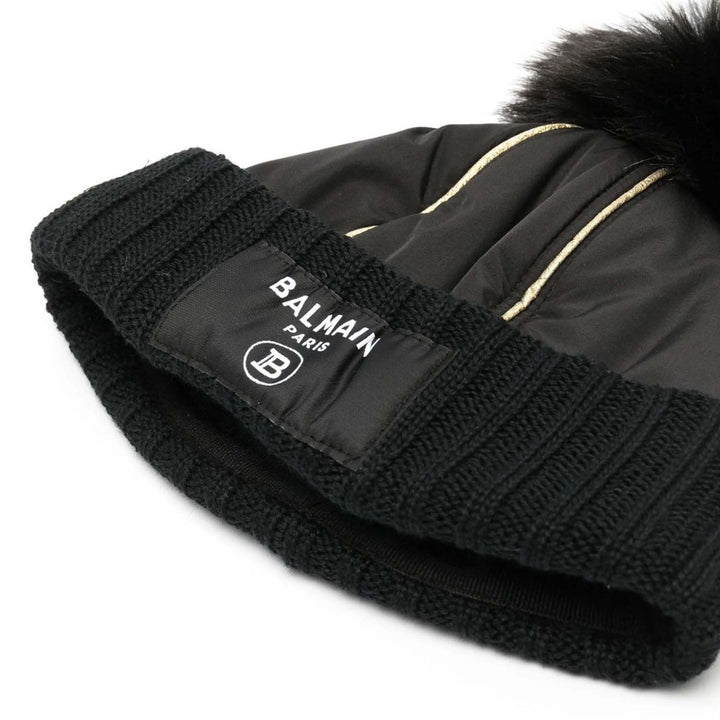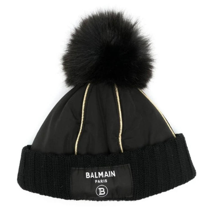 This Balmain Kids logo pom-pom beanie hat is embellished with gold contrast piping for a touch of sparkle.