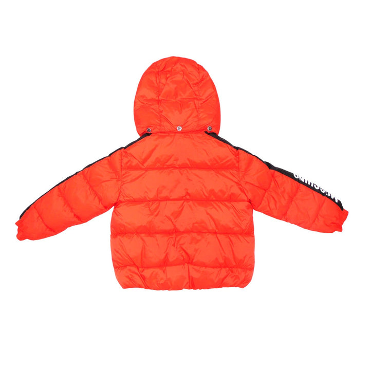 Black Logo Puffer Jacket for boys and girls by Moschino Kid.made in silky, lightweight nylon. Lightly padded, it has a Moschino Teddy Bear on the chest.