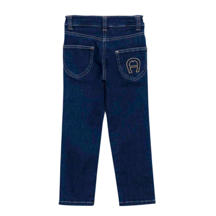 Looking for a stylish pair of denim for your little one? Here the one to perfectly meet up your needs. This stylish pair of Aigner denim pants with a golden strip on the sides featuring the brand logo and name is amplifying the style factor