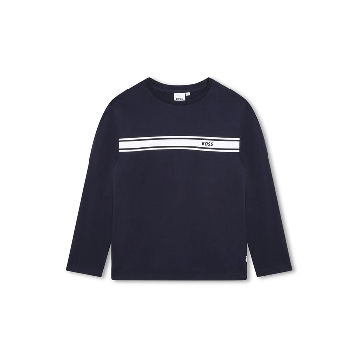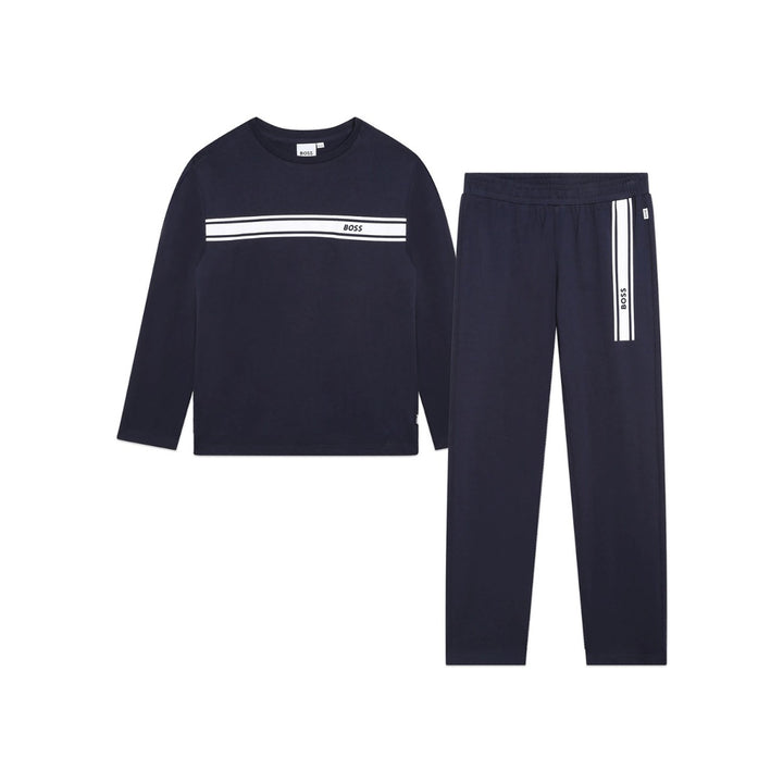 BOSS Kidswear puts its logo-focused spin on these pajamas. This two-piece set includes a top with the chest logo and trousers with logo trim at the sides.