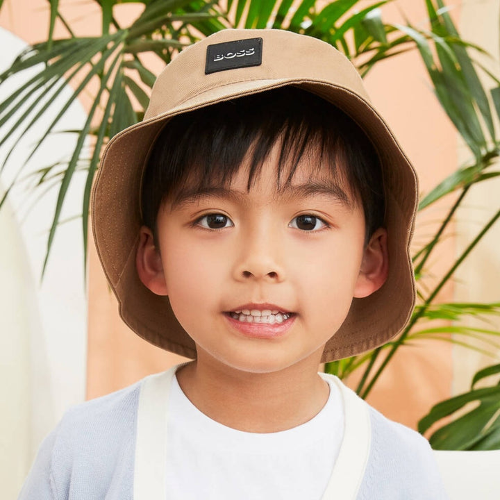 Great for a cool and casual look, this dark beige hat for boys and girls is by BOSS. Made from smooth cotton twill, it has subtle stitched detailing on the brim and a black rubberised logo patch on the front for an iconic finish.