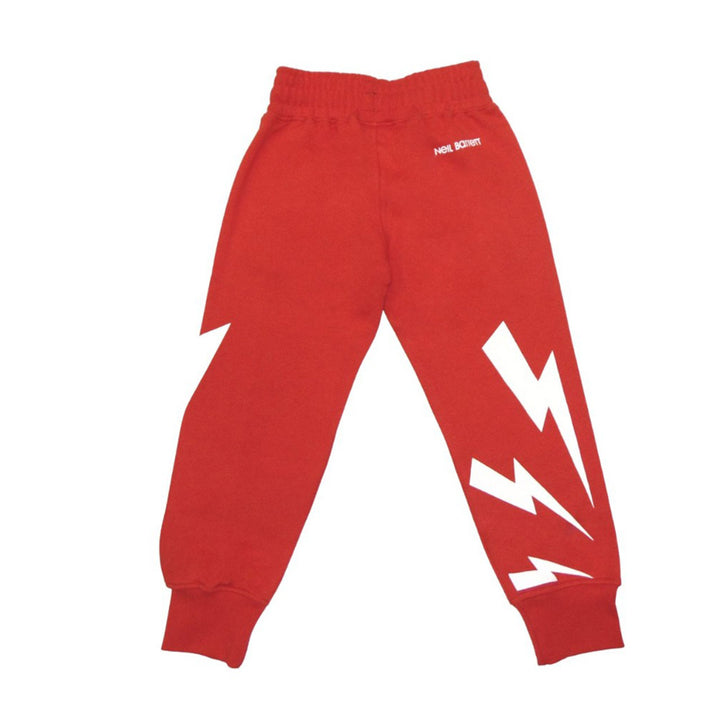 Boys red jogger description- Neil Barrett kids red joggers With a elastic band on the end of joggers. With cute prints and cotton fabric for extra comfort and ourdoor games.