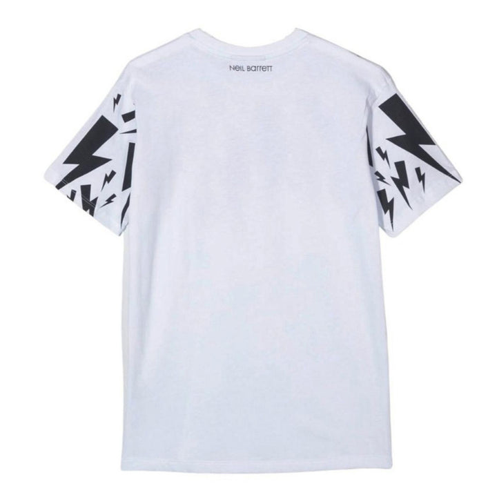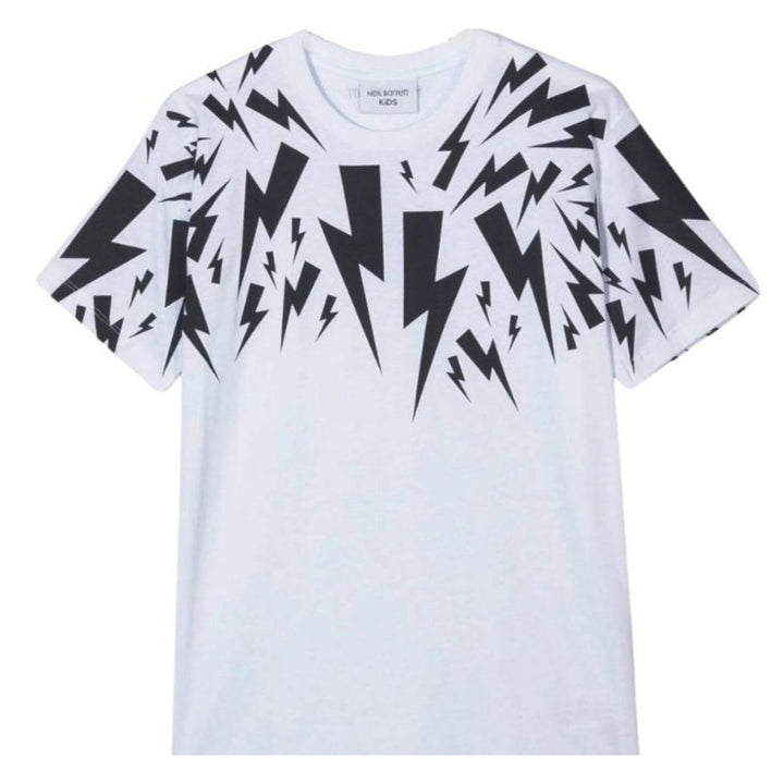 Neil Barrett Kids boys jersey t shirt in Black lightening prints half sleeved and 1% cotton for summers and dry season. You can pair it with blue denims and joggers pant