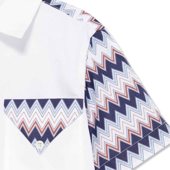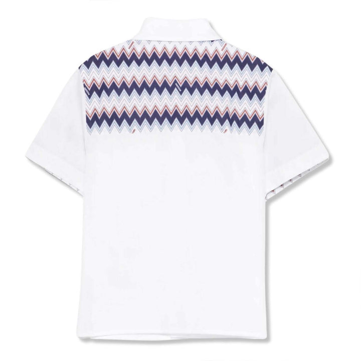 Add a touch of iconic Italian style to your child's wardrobe with this Missoni Kids short-sleeve shirt. Crafted from premium cotton, this crisp white shirt is elevated with the brand's signature zigzag print on the sleeves and chest pocket. The geome