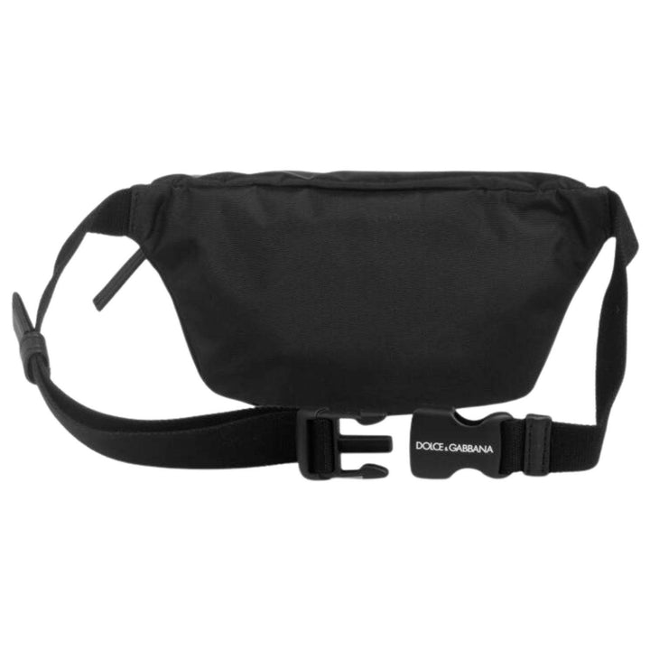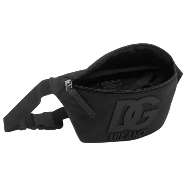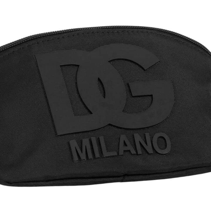 A stylish and practical accessory for boys, this black belt bag is by Italian label Dolce & Gabbana. Woven in durable canvas, it has a rubberised tonal DG logo on the front for instant brand appeal. The zipped compartment is ideal for carrying small