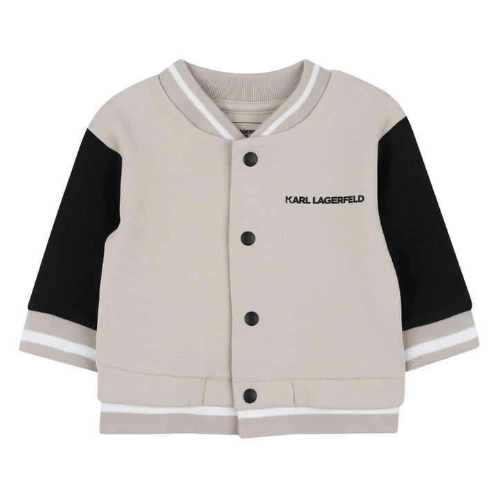 Boys beige tracksuit with bold back logo print, featuring a comfy zip-up hoodie and joggers for a stylish casual look.