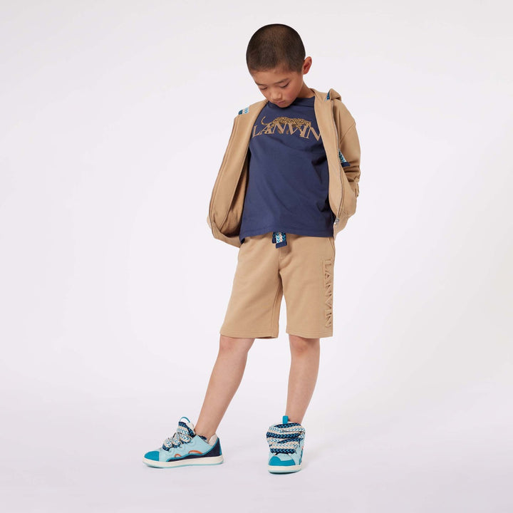Boys Beige Chevron-Applique Zip-up Hoodie