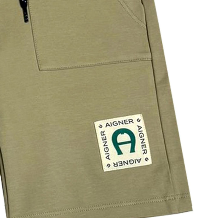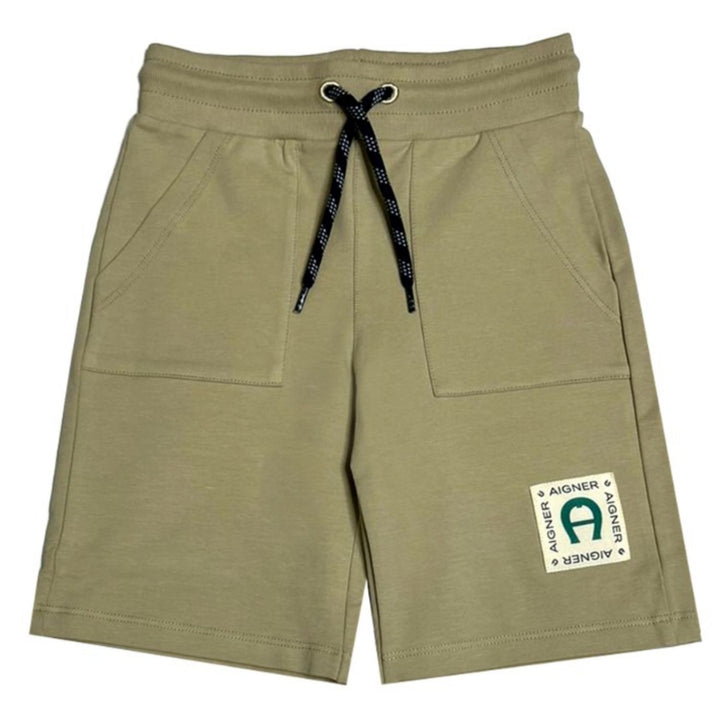 Beige shorts for boys by AIGNER, made in a soft and stretchy cotton jersey. In a casual design, they have useful side seam pockets and a comfortable logo jacquard elasticated waistband.