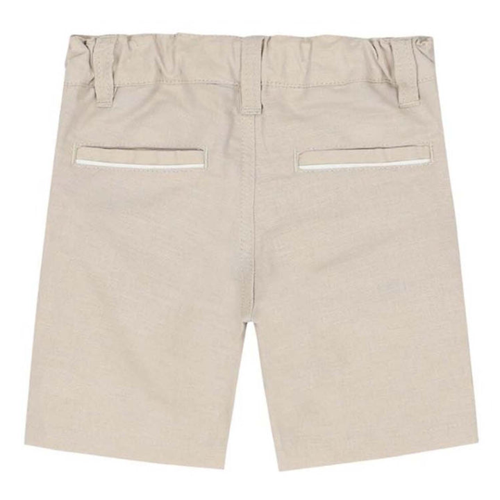 From AIGNER, beige Bermuda length shorts for boys with the brand's signature 'A' horseshoe logo for a designer touch. The sides have white logo tape trims and they fasten with a branded button above a zip on the front. Cool and casual, they are made