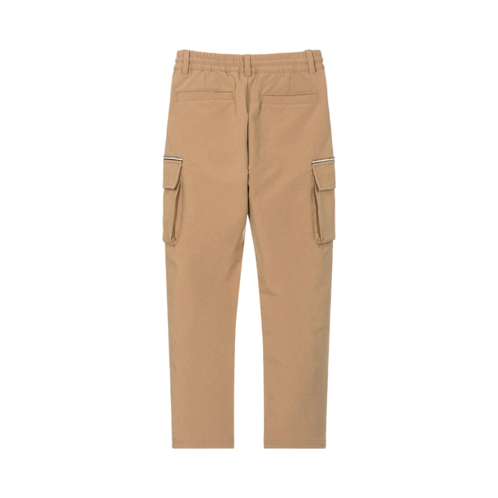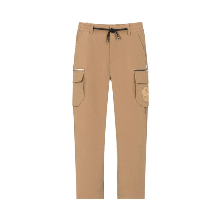 Mini-me beige trousers for boys by BOSS, made in soft fabric with a fleecy inside for extra warmth. Designed for a loose fit, these casual buttoned trousers have plenty of pockets for everyday essentials. The cargo pockets on each leg are trimmed wit
